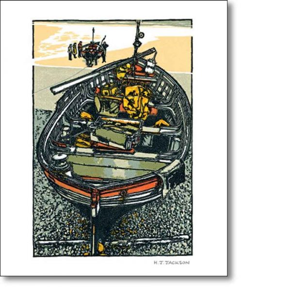 Taken from a linocut by H. J. Jackson, this greetings card is from Art Angels Publishing, Norwich.
